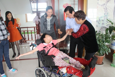 5月18日,区残联班子领导兵分三路开展助残日走访慰问活动,图为党组书记理事长衣伟昌走访脑瘫儿童家庭。